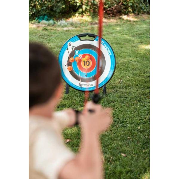 Boog geschikt voor rechts- en linkshandigen, voor kinderen vanaf 6 jaar, om te leren schieten vanaf afstanden van 5 tot 10 m, met pijlen met een zuignap (veiliger).
