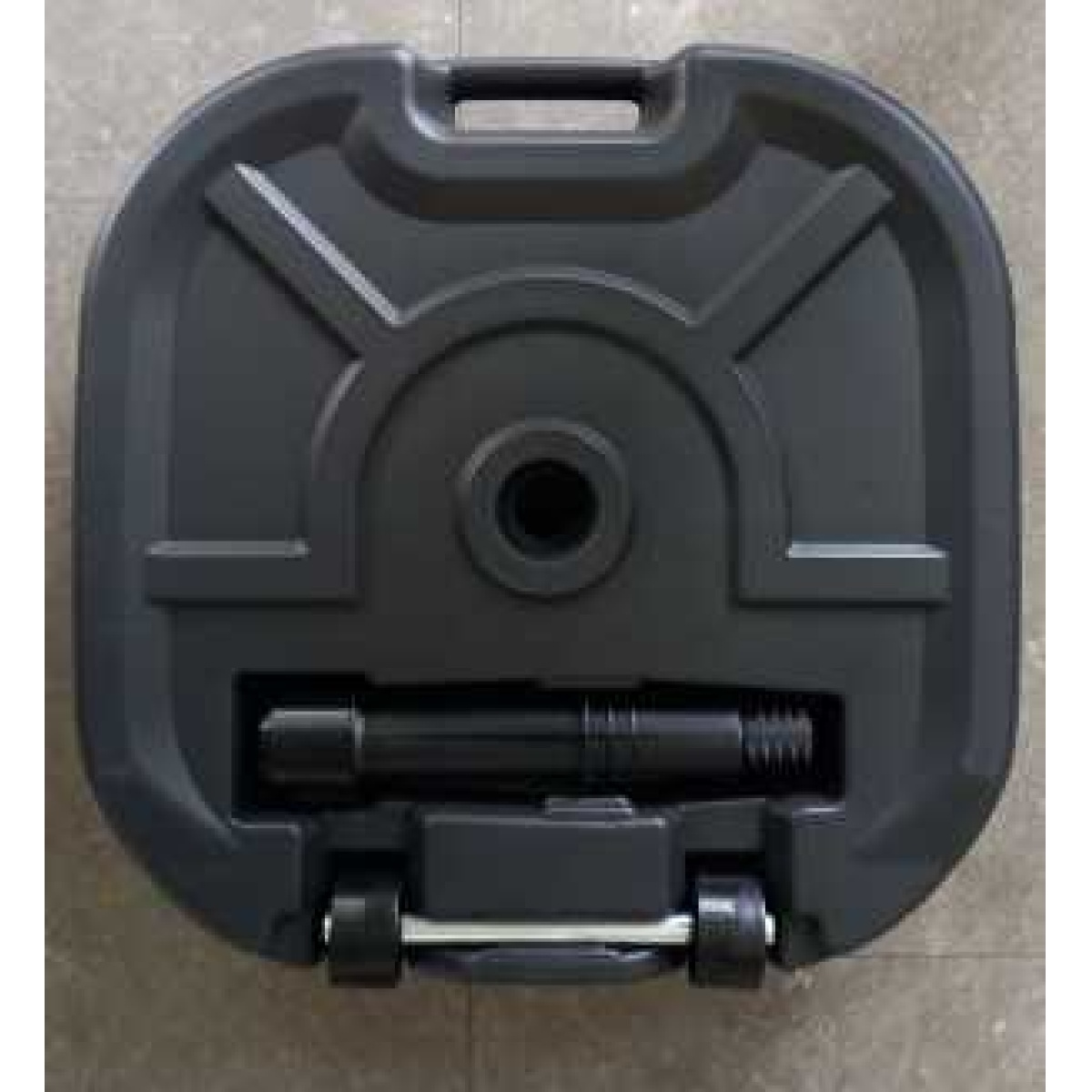 Dit is een parasolvoet waar je water in kan doen, zodat de grondplaat zwaarder wordt. Vervolgens stop je de vlag in de houder.